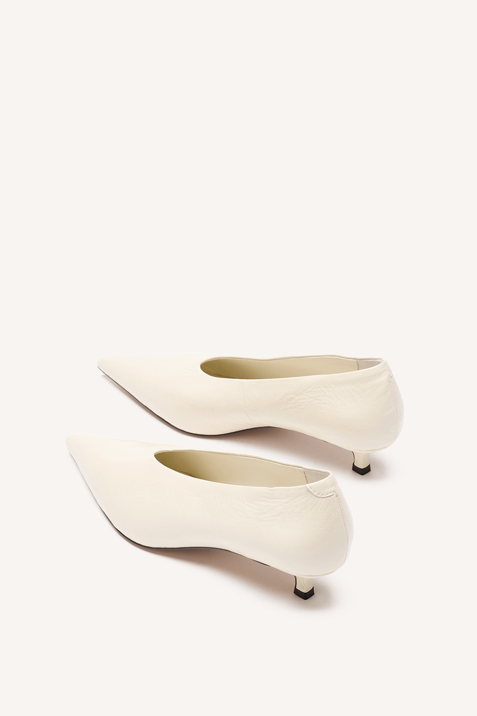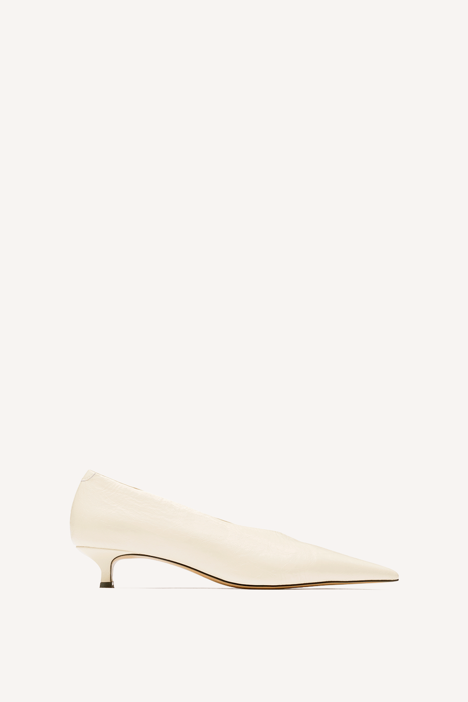 An icon reconstructed with easy going precision. The Lani Pump presents new proportions with a modern high throat, 30mm kitten heel and razor-sharp point toe.